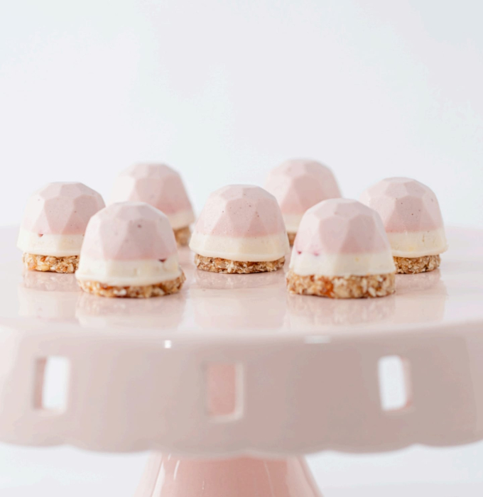 Mini Prăjitura cu Cremă de căpșuni, zmeură și Cremă de căpșuni este perfectă pentru iubitorii de deserturi fructate și pentru copii. Combinând arome proaspete de lămâie și căpșuni, această prăjitură oferă o experiență gustativă vibrantă și echilibrată. Ideal pentru a adăuga un strop de rafinament și savoare oricărei ocazii speciale.